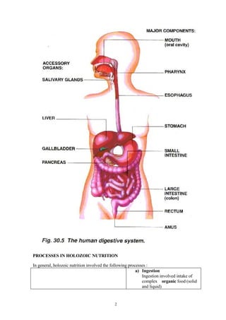 Food particles are mechanically and chemically digested into small substances in holozoic digestion. In botany having the character of a complete plant in point of nutrition. Holozoic nutrition is the process in which organic food produced by primary producers and includes several processes such as ingestion digestion absorption assimilation and egestion.