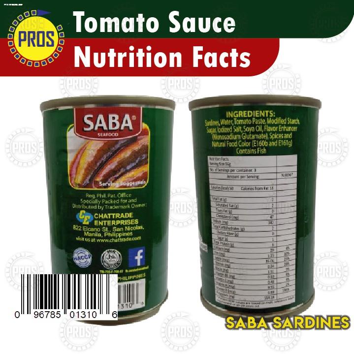 - Saba Sardines In Tomato Sauce - Get a bar chart of the top 10 nutrients and click to see an expanded list of over 151 nutrients including amino acids. For this reason we have placed the fish containing the most omega 3 fatty acids at the top of the list and thus the most nutritious fish. Find calories carbs and nutritional contents for Saba - Sardines Afritada and over 2000000 other foods at MyFitnessPal.